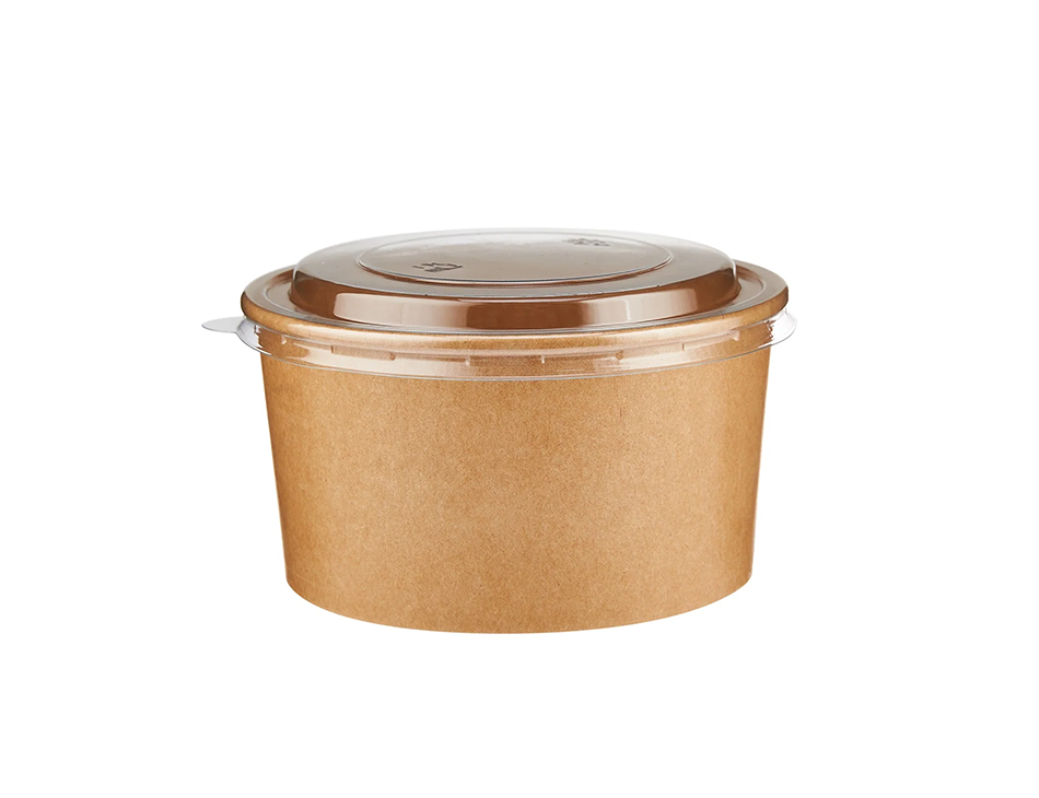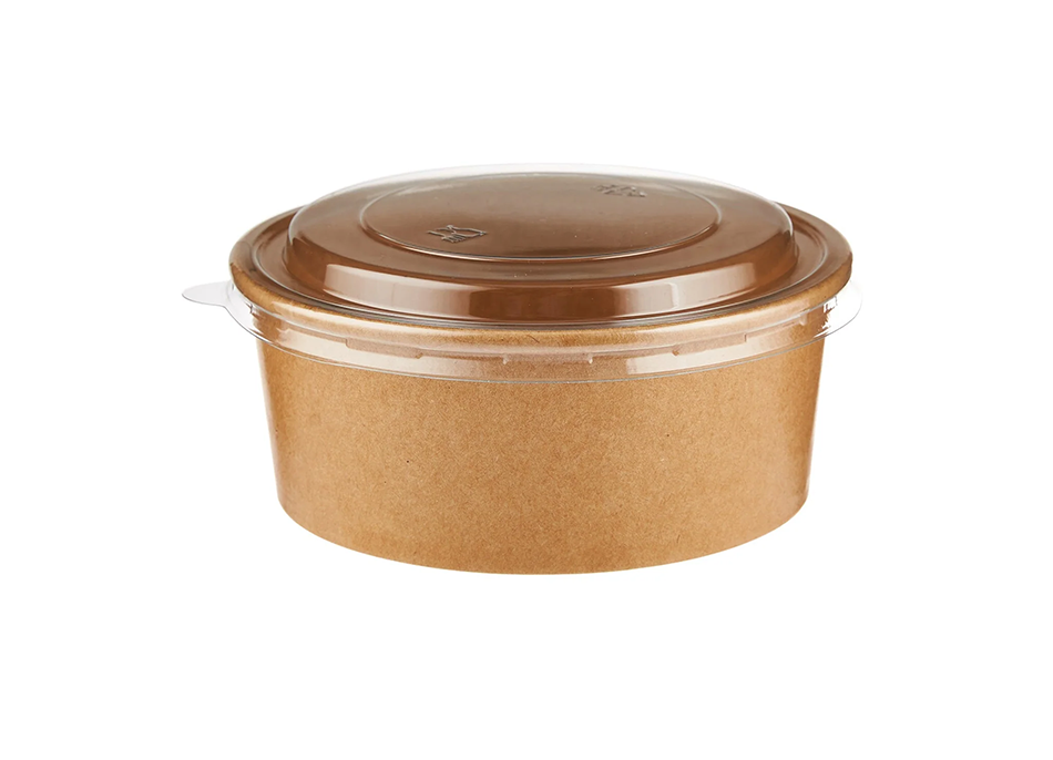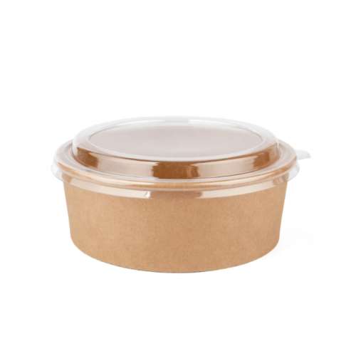 Kraft salad bowl is a durable leak-proof Kraft bowl made from ecofriendly material. These Kraft salad bowls have a brown inside lining and are a much more eco-friendly alternative to plastic bowls. Kraft salad bowls have become one of the most popular options for holding salads and takeaway foods because they are very aesthetically pleasing. The matching lids for these Kraft salad bowls are sold separately and are see through which allows you to put your food items on display to customers.